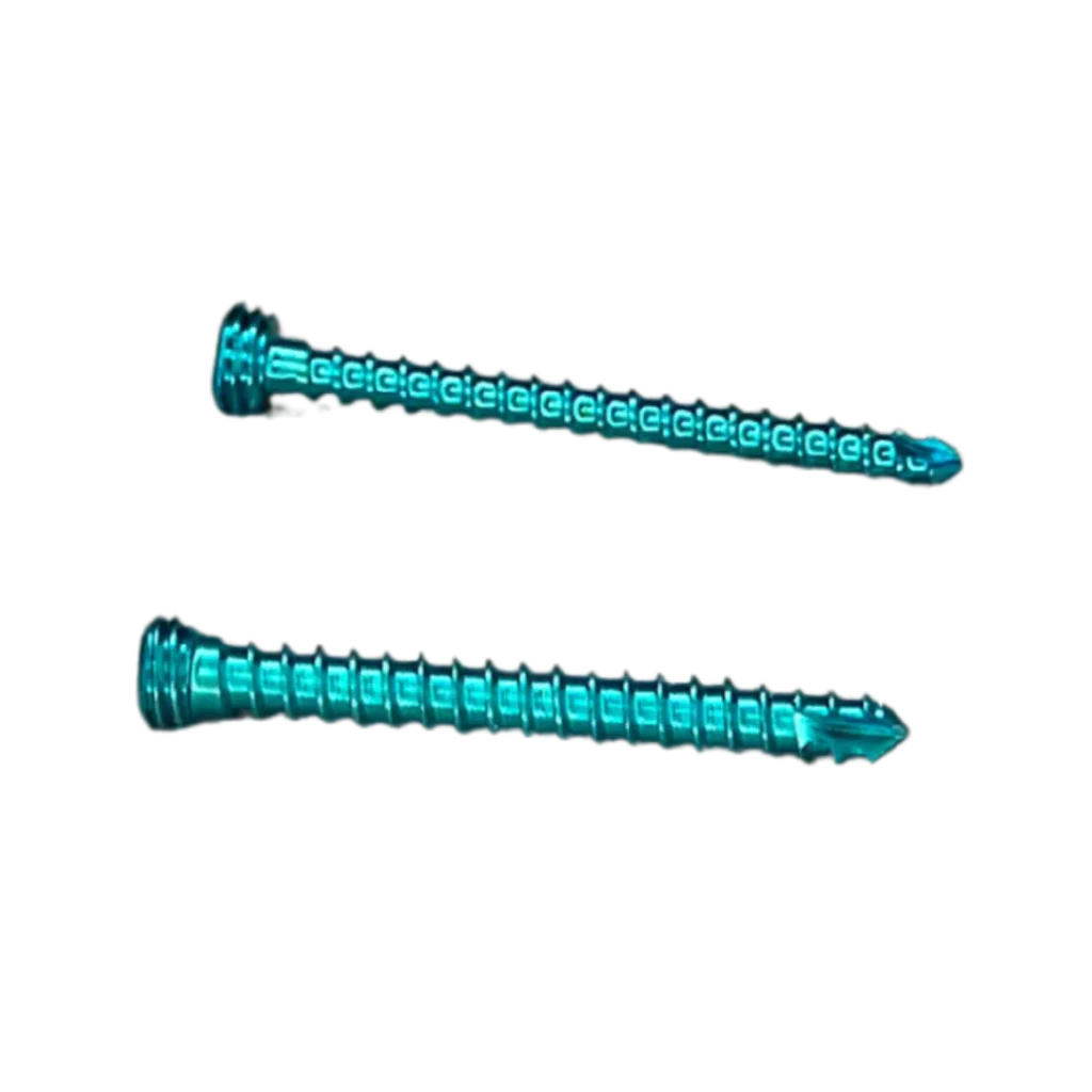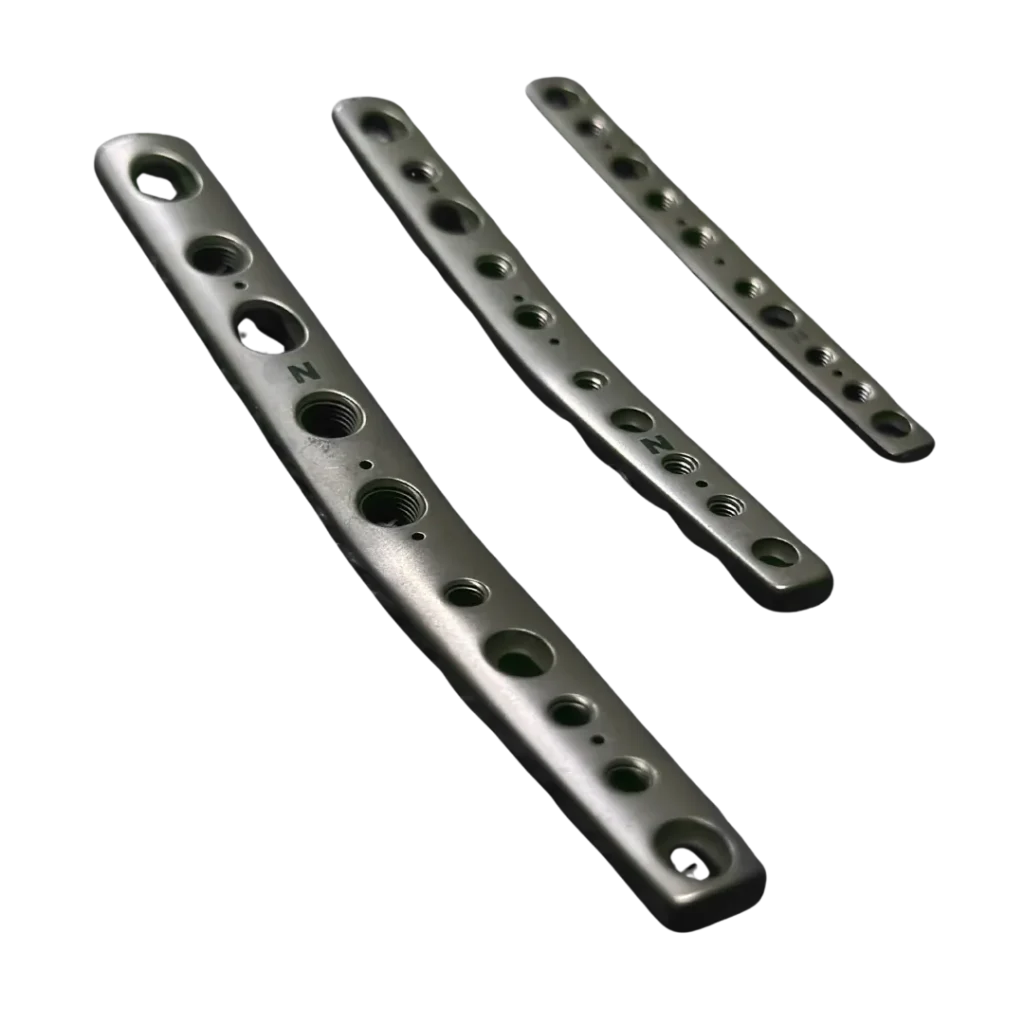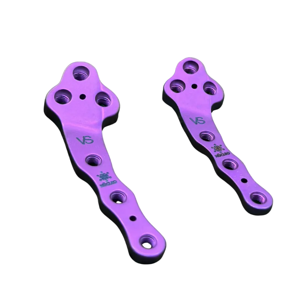 Implantes ortopédicos veterinarios de titanio anodizado para cirugía de rotura de ligamento cruzado en perro, fracturas y artrodesis. Placas TPLO en todos los tamaños, tornillos corticales y de bloqueo, placas rectas, curvas y en T.
