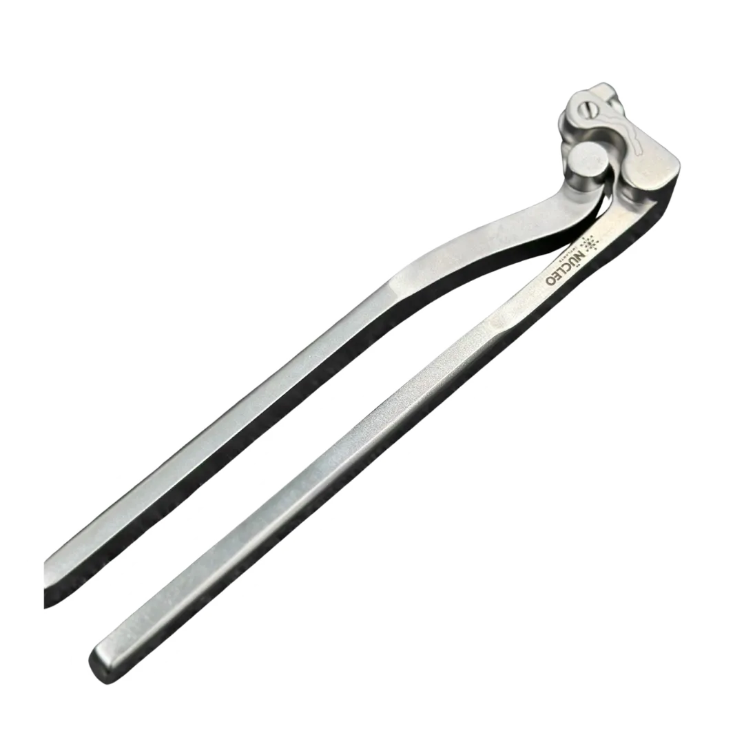 Doblador de placas de acero inoxidable para adaptación anatómica de implantes de titanio.