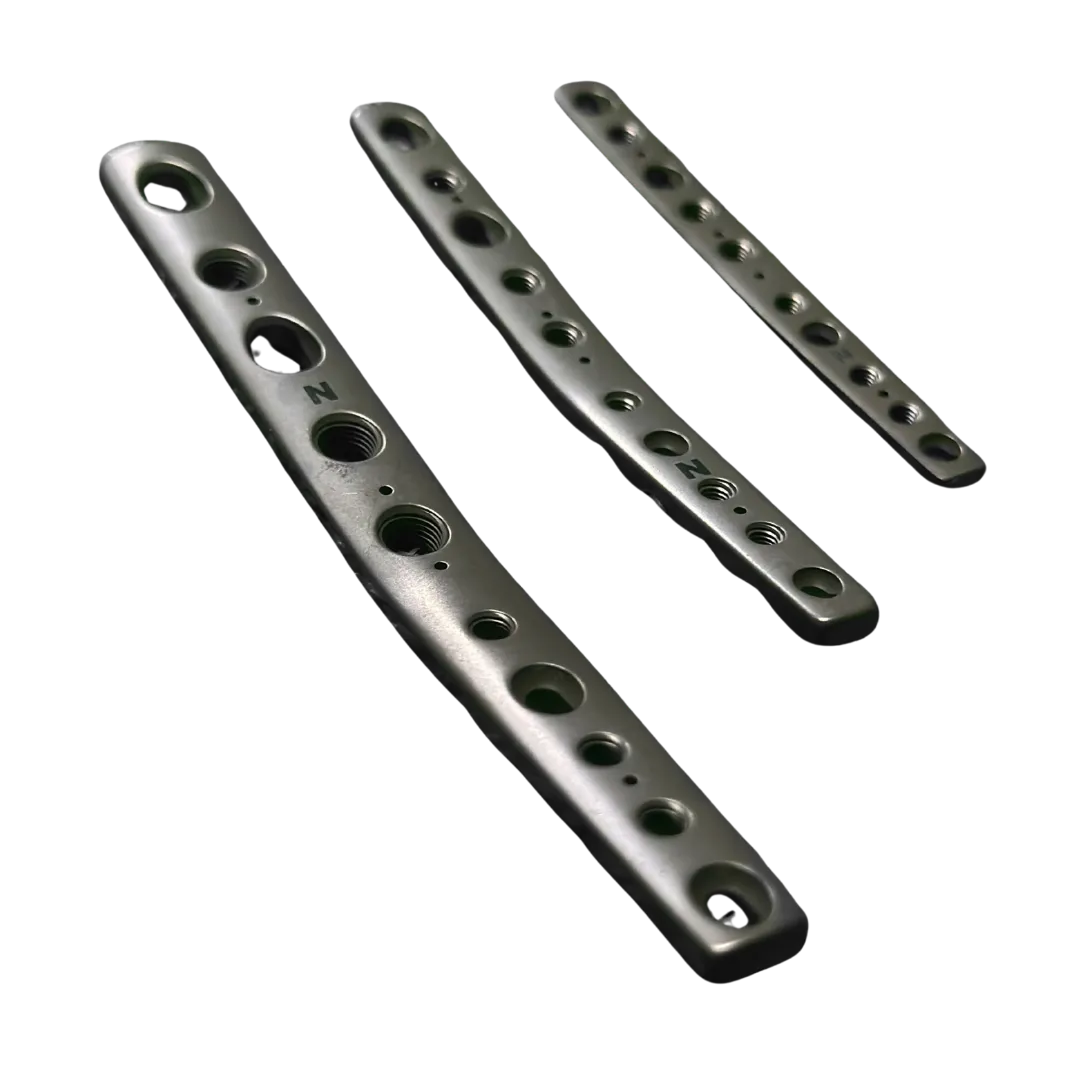 Placa de titanio TC4 anodizado con diseño anatómico para fusión pancarpal.