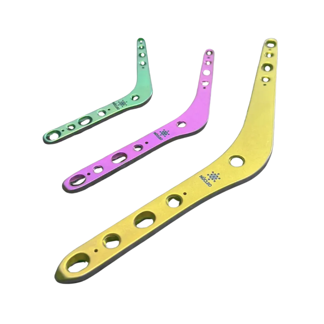 Placa NT-Pantarsal de titanio TC4 anodizado para artrodesis de tarso. Diseño anatómico para fusión pantarsal.