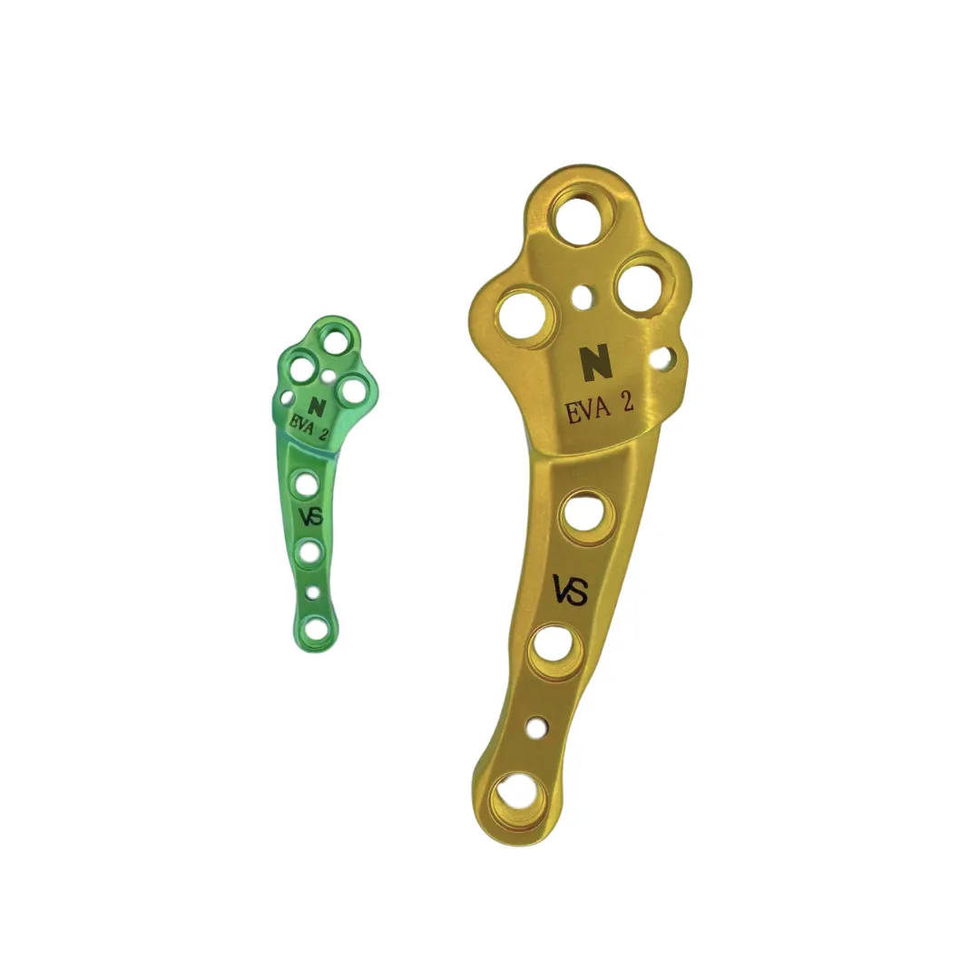 Placa NT-Curve Patelar de titanio TC4 anodizado para luxación de rótula y TPLO. Sistema de bloqueo.